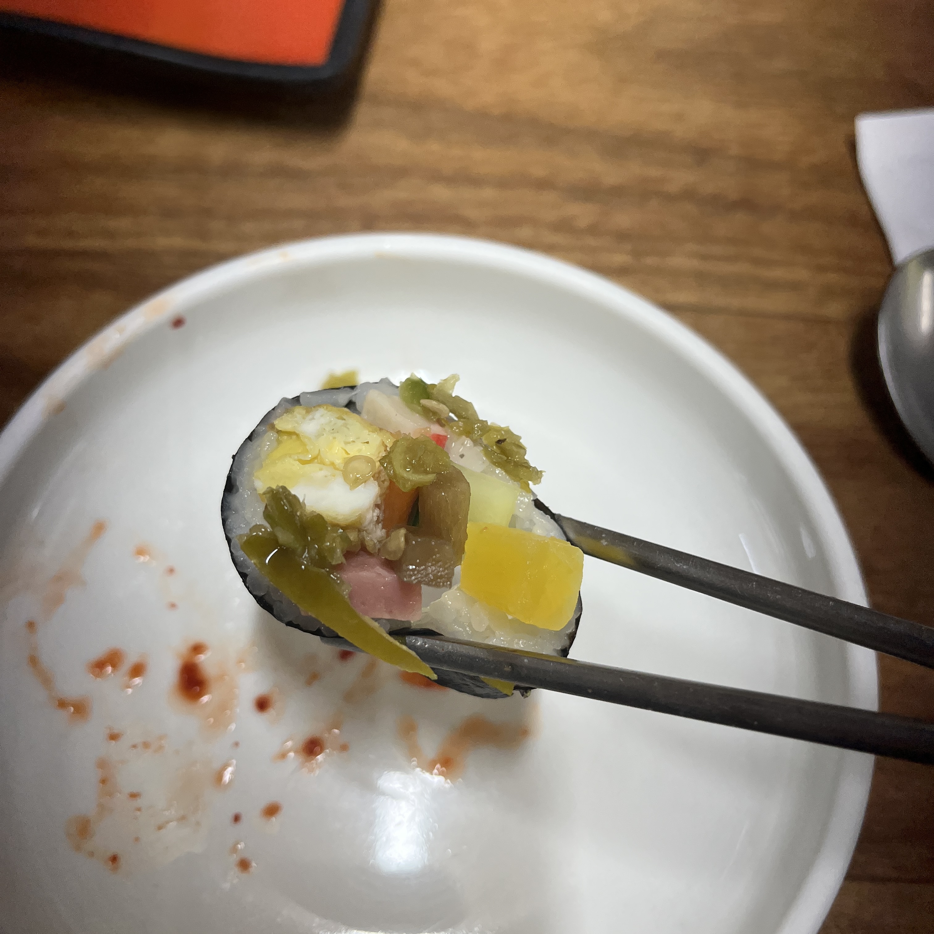 오이, 단무지, 우엉?, 햄 등.. 진짜 별거 없는데,