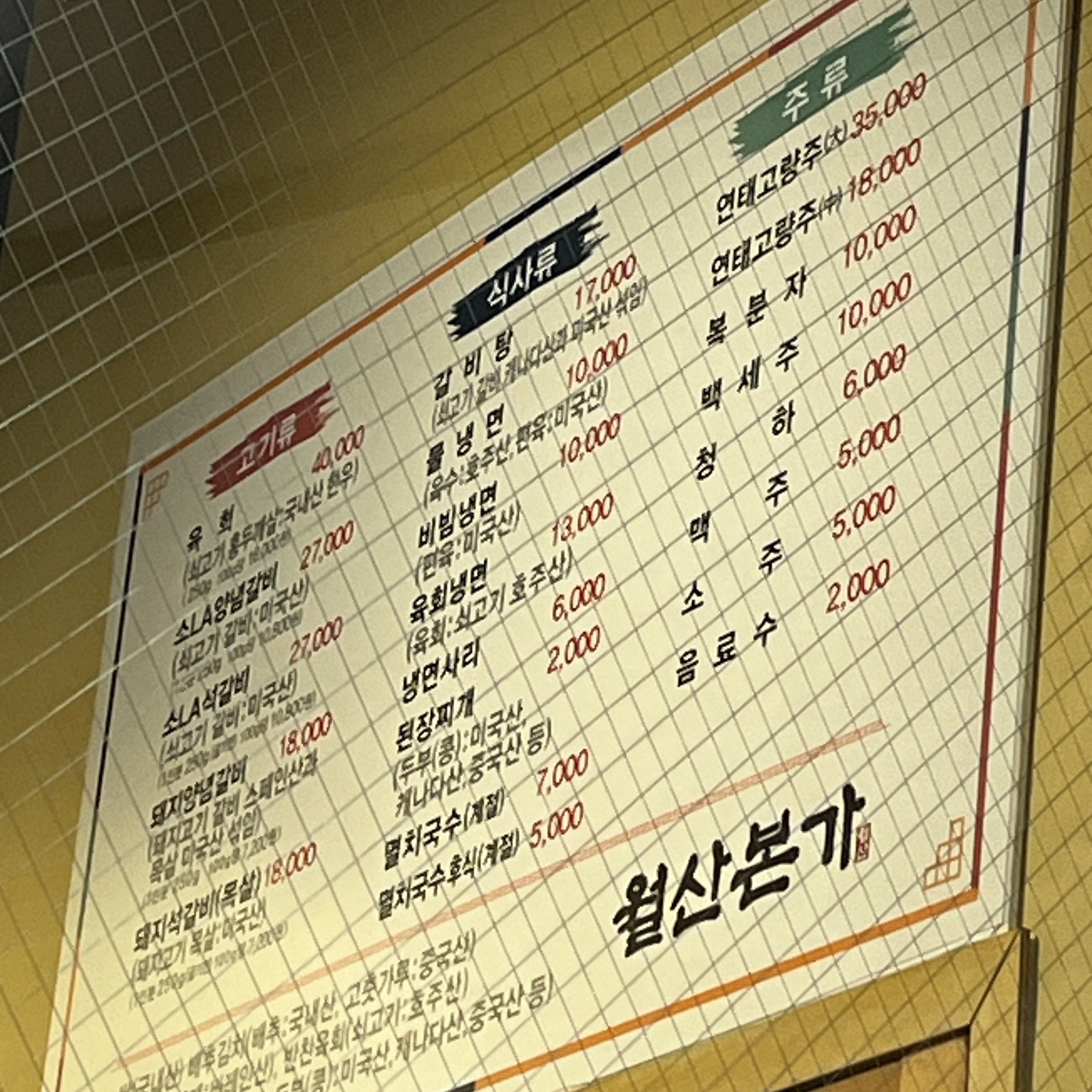 월산본가 메뉴입니다.
