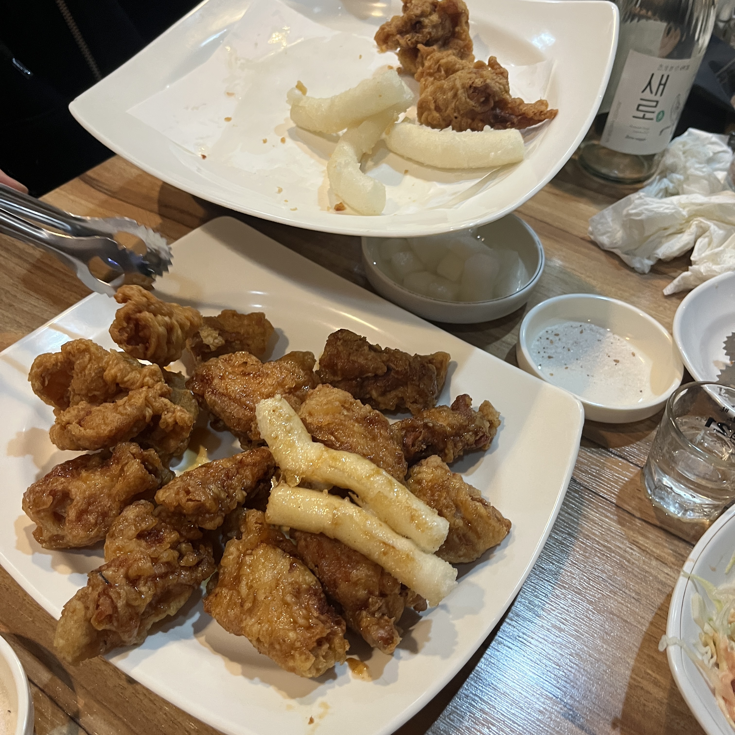 요거 먹으며 소주한잔 걸칠 쯤, 치킨이 나와줍니다.