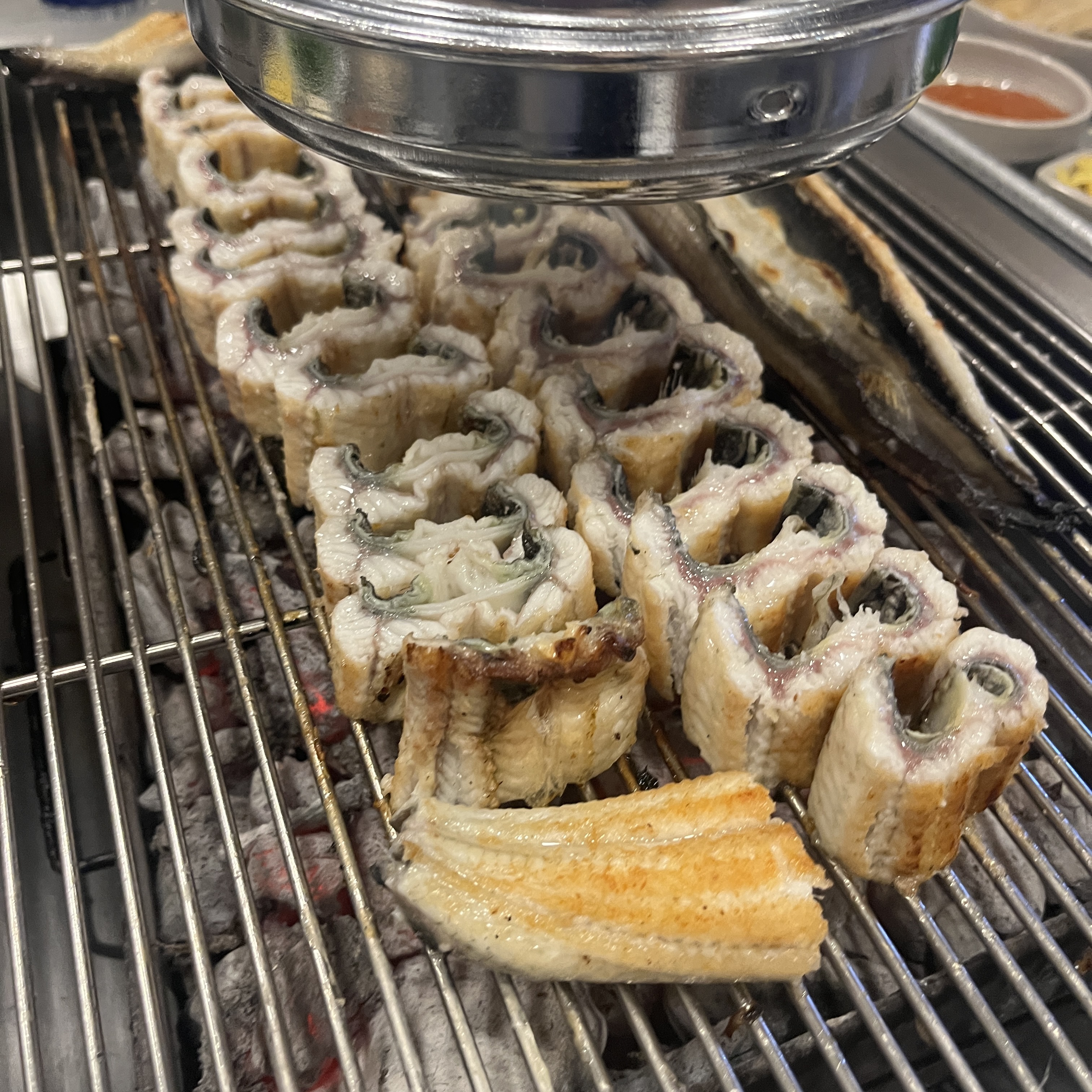 좋은 숯불과 불판 위에서 쟈글쟈글 익어가는 장어~